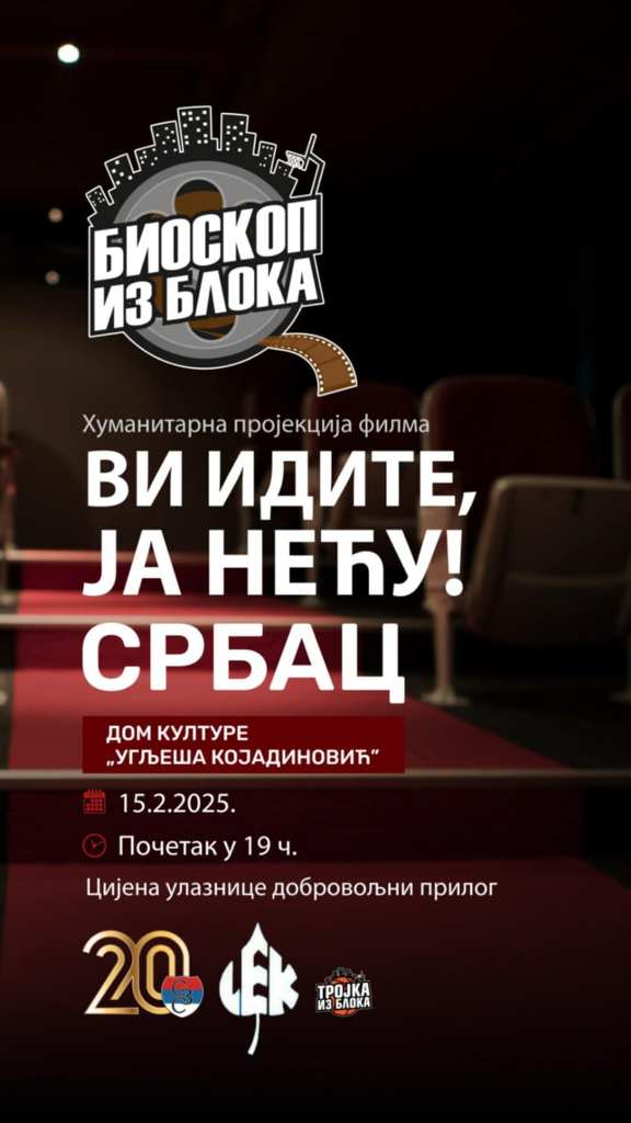Хуманитарна пројекција филма “Ви идите, ја нећу” у суботу, 15. фебруара у Српцу