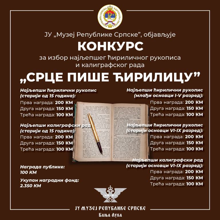 Ради се о наградном конкурсу за најљепши ћирилички рукопис и најљепши ћирилички калиграфски рад, а овогодишњи задати текст за преписивање је пјесма “И опет ми душа све о теби сања” Алексе Шантића.