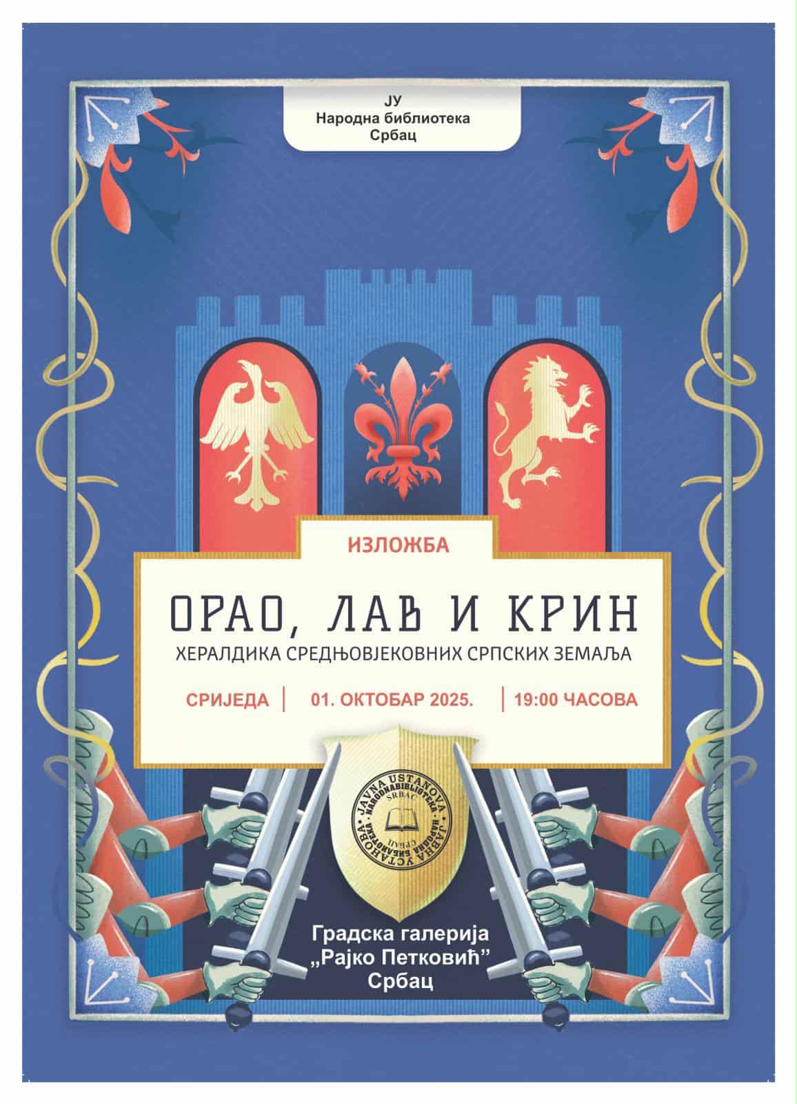 У Градској галерији “Рајко Петковић” у Српцу, у сриједу, 1. октобра, биће отворена изложба под називом “Орао, лав и крин – хералдика средњовјековних српских земаља”.