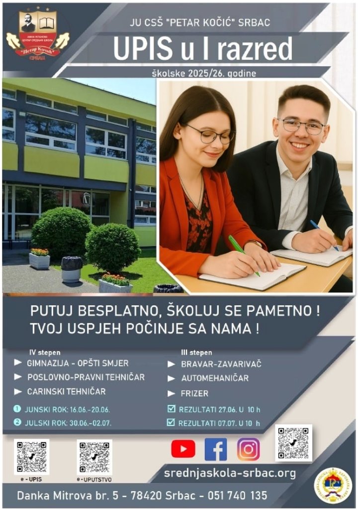 Објављен конкурс за упис ученика у први разред средњих школа