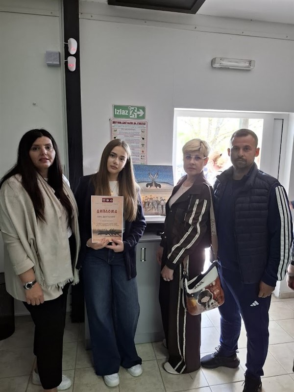 Награду за треће мјесто за ликовни рад на ову тему добила је ученица србачке основне школе Јана Драгојевић.