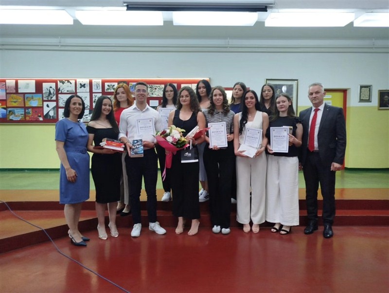 “Валентина Ћирић проглашена је учеником генерације у четворогодишњем а Маја Маркозић у трогодишњем степену образовања. Осим тога, имамо још три ученика вуковца и пет одликаша. Свима њима су уручене похвале и поклони-књиге по њиховом избору, и то вуковцима у износу од 100 KМ, а одликашима у износу од 50 KМ. Захваљујем базенима ‘Посједон’ који су за све матуранте обезбиједили бесплатне сезонске улазнице, али и за ученике који још нису матуранти, а који на крају школске године имају све петице и примјерно владање, као и за ученике који током школске године немају изостанака са наставе. Свим ученицима честитам и желим да успјешно реализују своје планове за будућност“, рекао је Живанић.