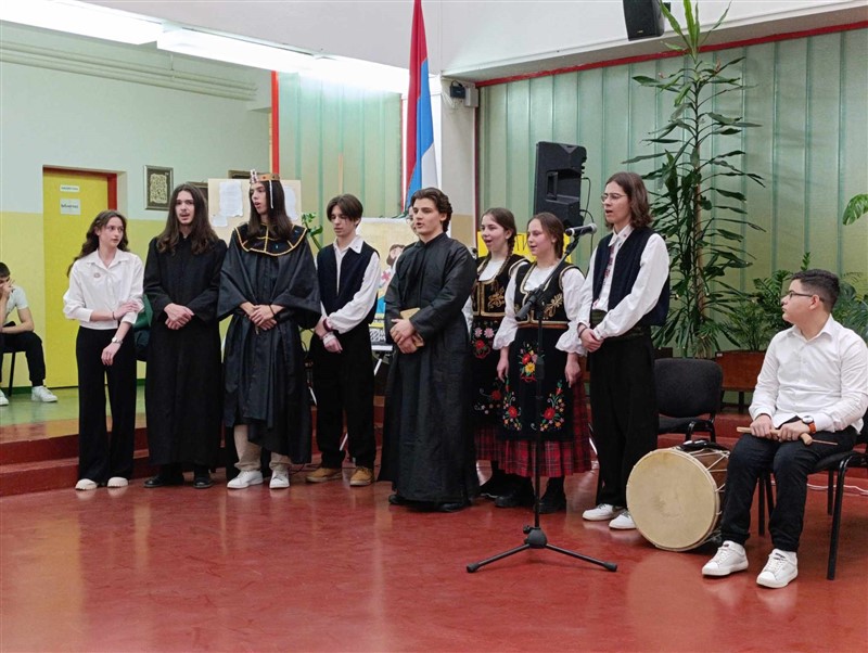 Ученици су, у сарадњи са професорима, припремили културно-умјетнички програм на којем су кроз игроказ, рецитације, пјесму и литерарне радове показали знање о лику и дјелу Светог Саве.