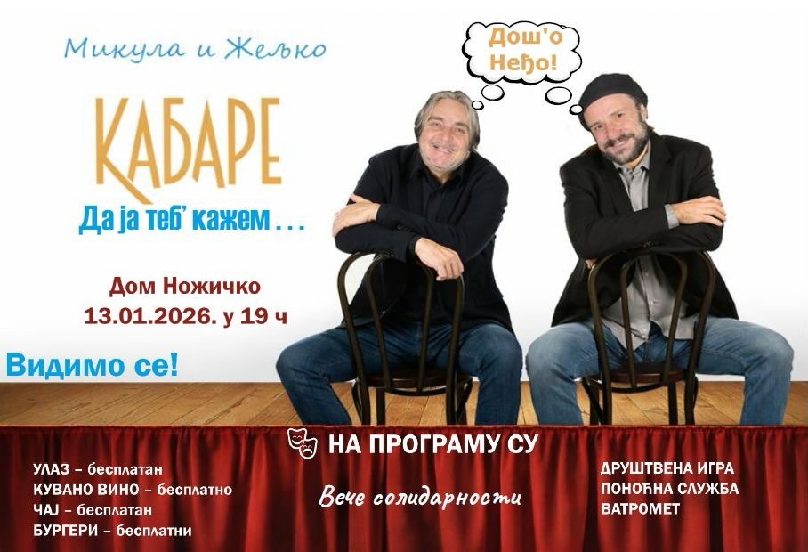 У уторак, 13.01.2026. године, од 19 часова, у Дому у Ножичком посјетиоце очекује разноврстан програм: