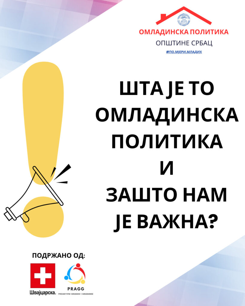 Циљ пројекта је израда нове Омладинске политике општине Србац, стратешког документа који ће одражавати стварне потребе и жеље младих и који је усвојен 2012. године и од тада није обновљен. Удружење “Ц.Е.З.А.Р.” је уз подршку младих активиста и стручњака већ формирало Радну групу која се редовно састаје и ради на нацрту нове омладинске политике.