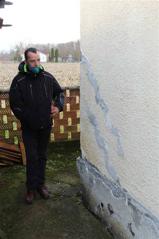 “Пукотине се налазе по цијелој кући и покушавао сам их закрпити малтером али се стално појављују нове. Приликом већих падавина кров пропушта воду на више мјеста а кад је хладније вријеме дешава се и да пукне цијев у купатилу”, прича Небојша.